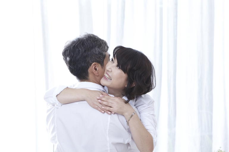 [관련키워드] 커텐앞 포옹하는 남자와 여자,